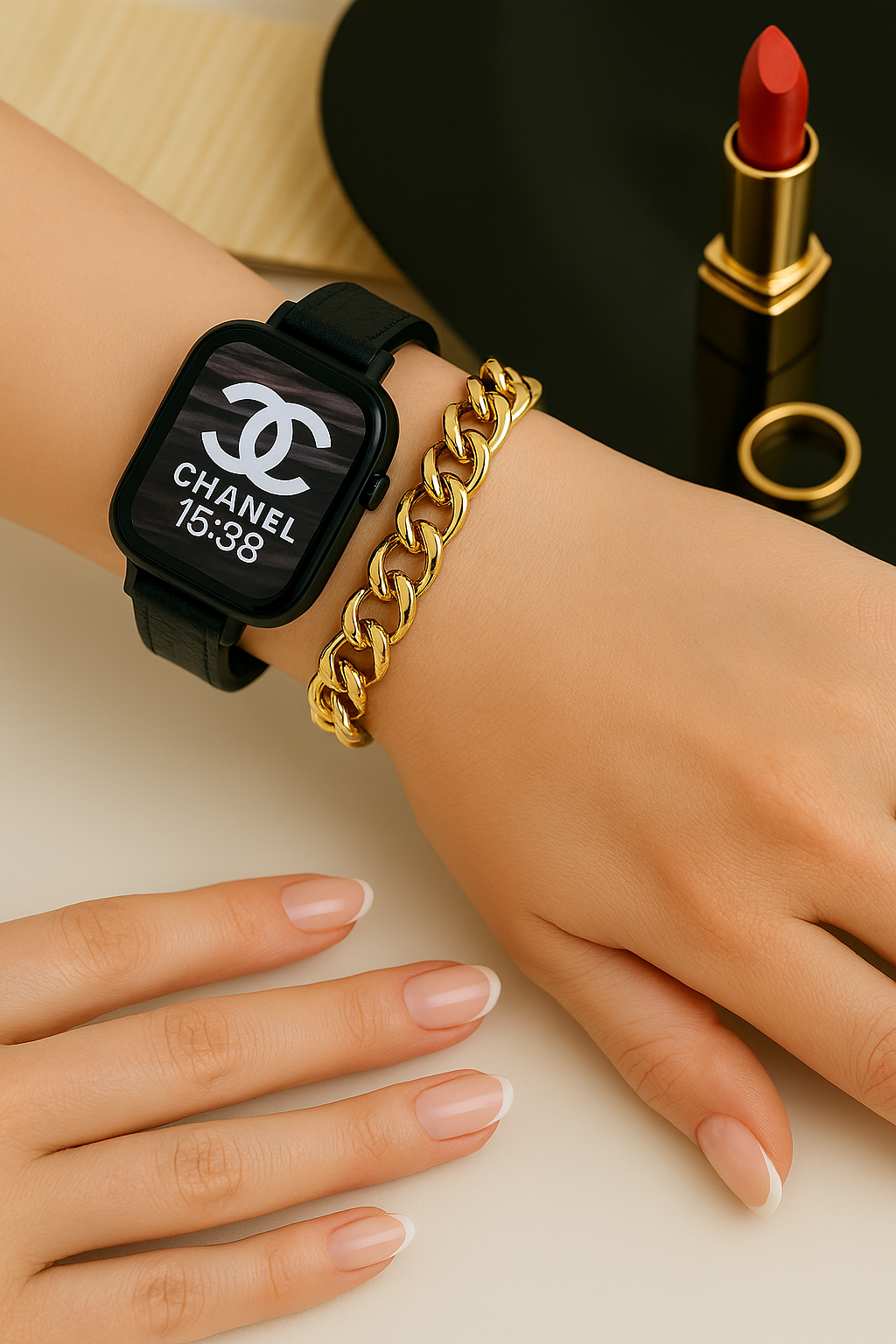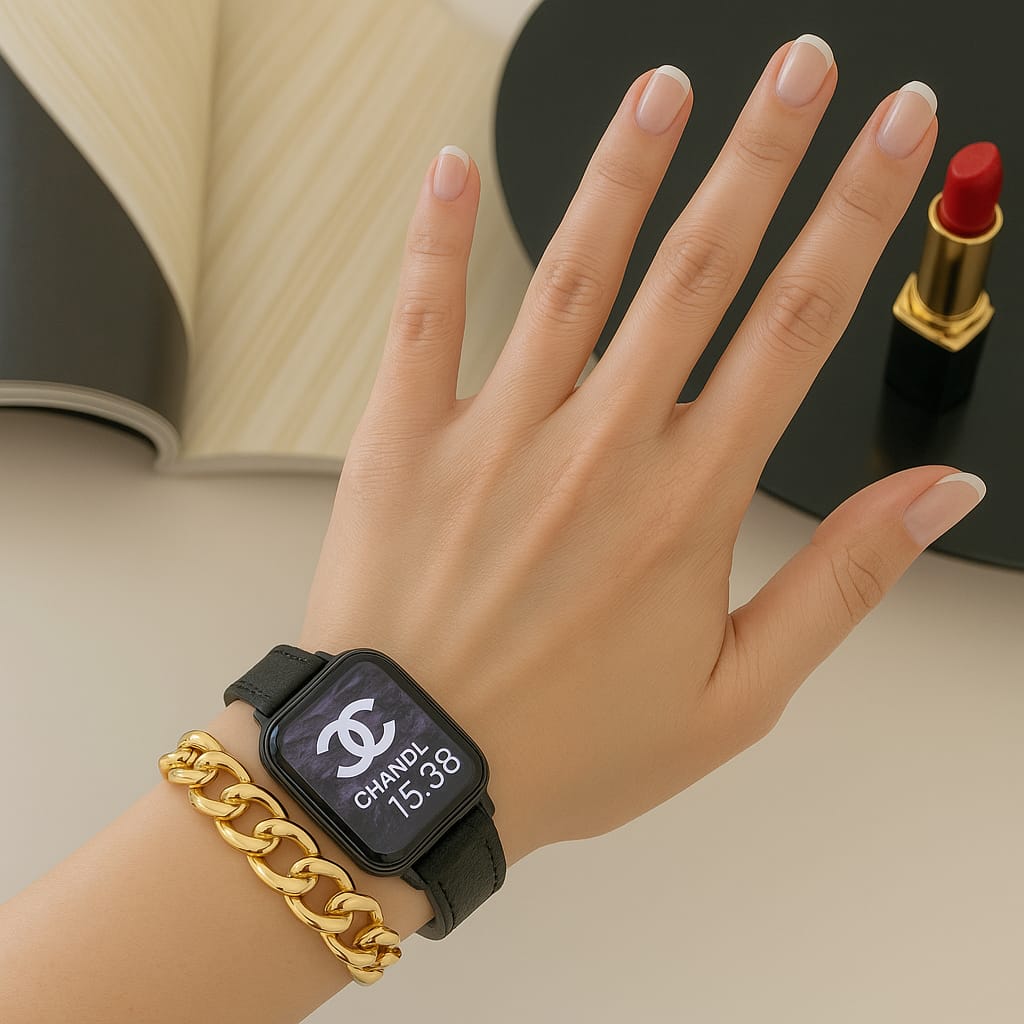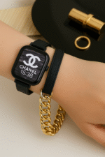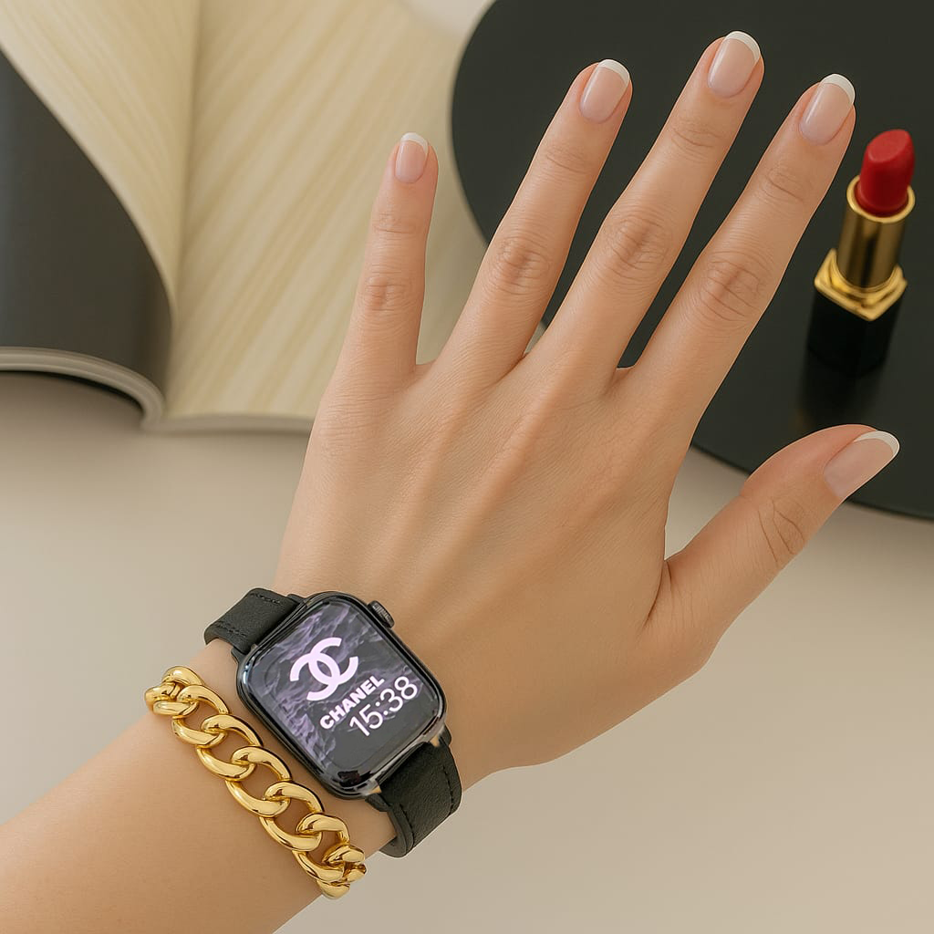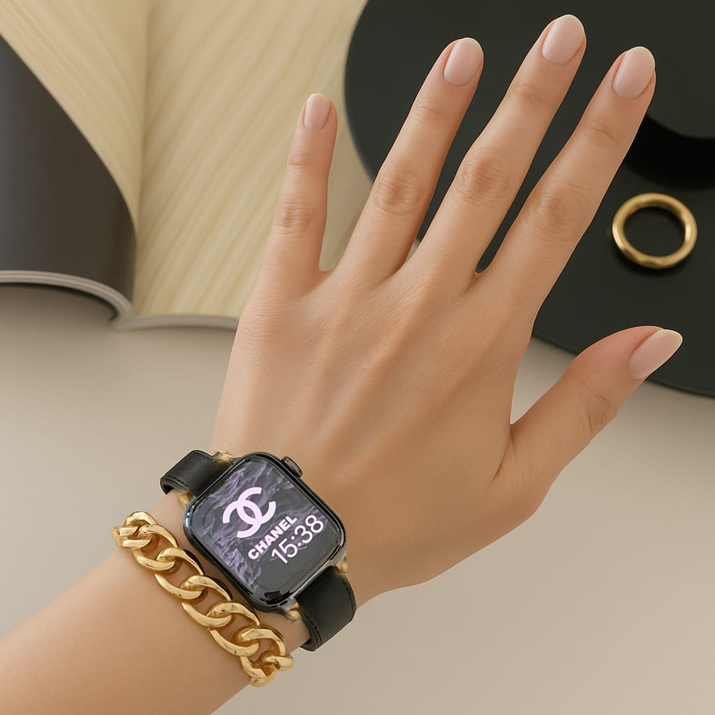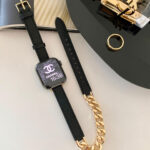 A double loop watch band combining leather and chain links for a bold yet refined statement