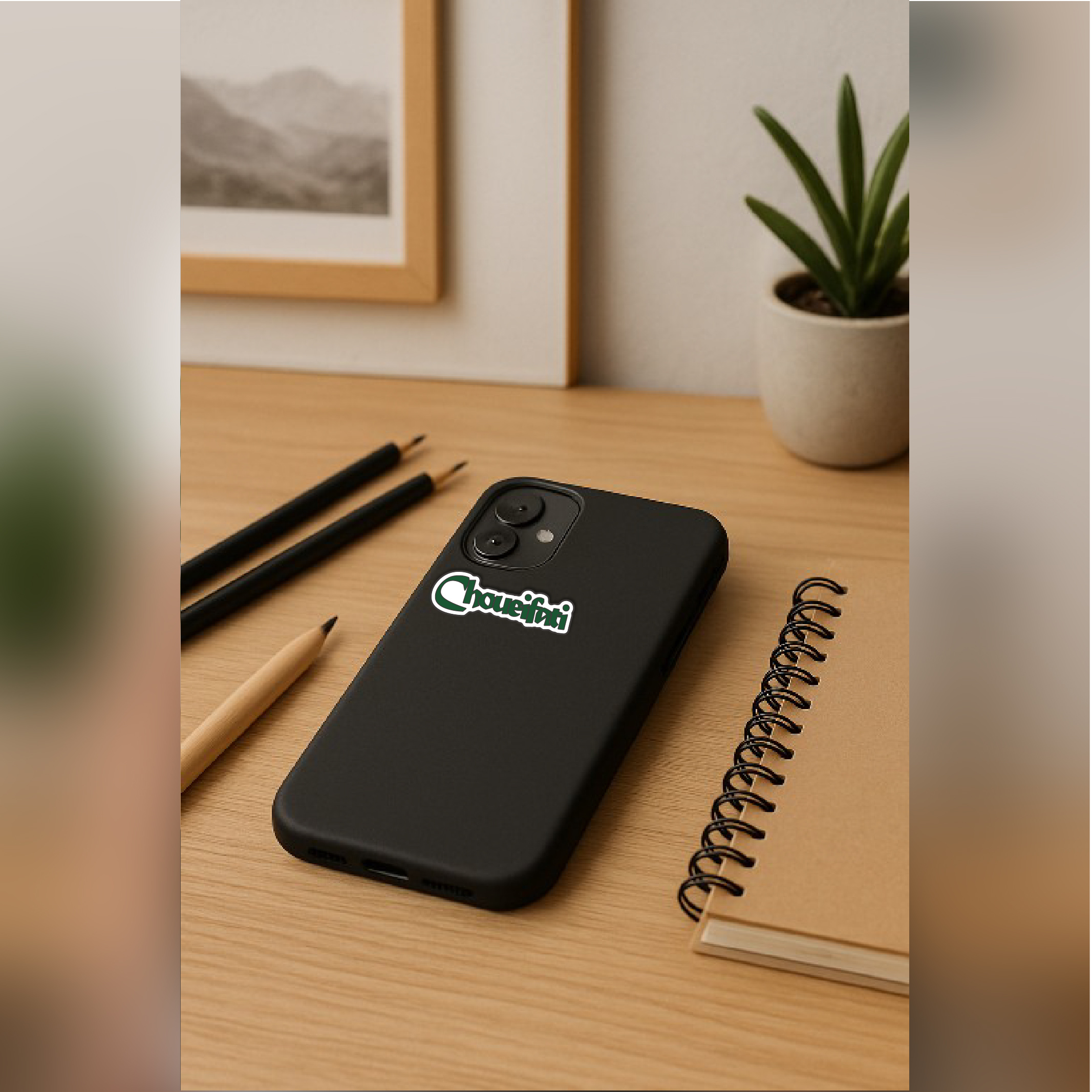 Celebrate your Choueifati pride with this exclusive metal Green -on – Black Phone Sticker, a bold symbol of belonging and tradition.